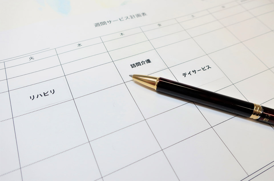 担当のケアマネジャー、サービス提供事業者の担当者と一緒にケアプランを作成します。ご利用者様の状態や介護保険給付の限度額を考慮しながら、利用頻度やサービス内容など、ご利用者様にとって最適なケアプランを作成します。